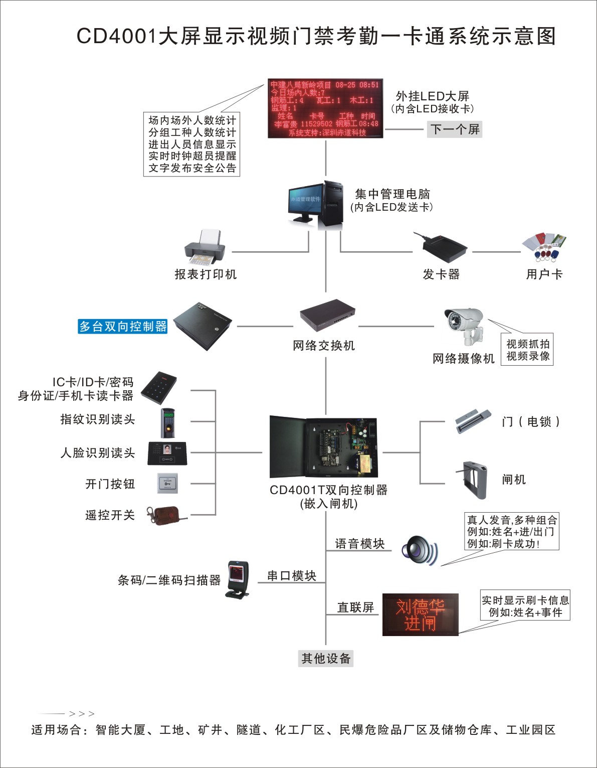 2、LED大屏實(shí)時(shí)顯示進(jìn)出人員信息